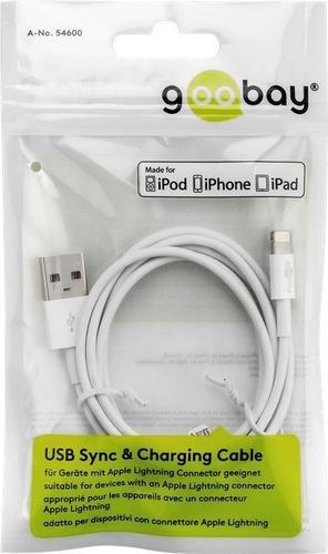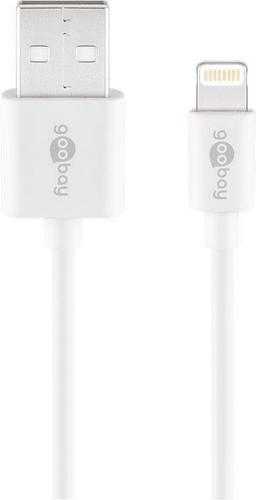 Goobay Lightning USB Charging and Sync Cable, 0.5 m. Cable length: 0.5 m, Connector 1: Lightning, Connector 2: USB A. Output current (max): 1 A. Compliance certificates: RoHS, Certification: CE, WEEE. Cable diameter: 2.8 mm. Quantity per pack: 1 pc(s), Package type: Polybag