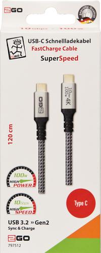 High-quality aluminum connectors with gold-plated contacts, an extra long and stable strain relief and the attractive nylon coating underline the high-end character of this cable.2GO 797512. Cable length: 1.2 m. Connector 1: USB C, Connector 2: USB C, USB version: USB 3.2 Gen 2 (3.1 Gen 2), Maximum data transfer rate: 10 Gbit/s, Connector contacts plating: Gold, Product colour: Black, Silver