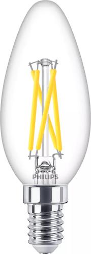 Philips LED clear candles provide a beautiful, sparkling light effect and an exceptionally long life. Beautiful both switched on and switched off, this light bulb is the perfect match for chandelier fixtures with small (E14) fittings.Philips Filament Candle Clear 25W B35 E14. Bulb power: 2.5 W, Equivalent bulb power: 25 W, Fitting/cap type: E14, Luminous flux: 340 lm, Bulb lifetime: 15000 h, Light colour: Warm glow, Color Rendering Index (CRI): 90, Power factor: 0.6