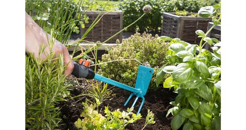 Use the GARDENA combisystem Hand Hoe to loosen and aerate the soil as well as remove weed. The GARDENA combisystem allows for flexible use, thanks to the exchangeable attachments. The Hand Hoe is compatible with all handles of the GARDENA combisystem and can be mounted and secured with the handle. To work comfortably without bending over, you can easily remove the handle and replace it with any combisystem handle. The combisystem Extension Handle for Hand Tools (Art. No. 8900-20) is ideal for extending hand tools. The secure connection between hoe and handle ensures that you can always work comfortably. For comfortable handling, the hoe features an ergonomically shaped grip with integrated soft component. It is angled at the end so that your hand does not slip. The practical Hand Hoe has three teeth on one side and a straight blade on the other. It has a working width of 6.5 cm. Thanks to the high-quality steel and the Duroplast coating, the Hand Hoe is protected from the corrosion and can be used for a long time. Store the combisystem Hand Hoe conveniently with the combisystem Tool Rack Flex (Art. No. 3505-20). The quality product convinces with 25 years of warranty. Let your tool family grow. GARDENA combisystem. Interchangeable. Durable. For any gardening task.