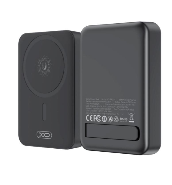 Introducing our latest innovation in portable power solutions, the XO magnetic 10000mAh power bank. It's your reliable companion for charging on the go. Featuring a sleek ABS+PC construction, it's both durable and lightweight. Equipped with USB-C input and output ports, it supports rapid charging with up to 18W input and 20W output. Additionally, enjoy the convenience of wireless charging with support for 5W, 7.5W, 10W, and 15W output options. The battery display features a convenient light display, keeping you informed about the power status. With small dimensions it's compact and portable, fitting easily into your bag or pocket. Supported protocols include QC2.0, QC3.0, AFC, FCP, PD2.0, and PD3.0, ensuring compatibility with a wide range of devices. Stay powered up wherever you are with the XO Power 10000mAh power bank.