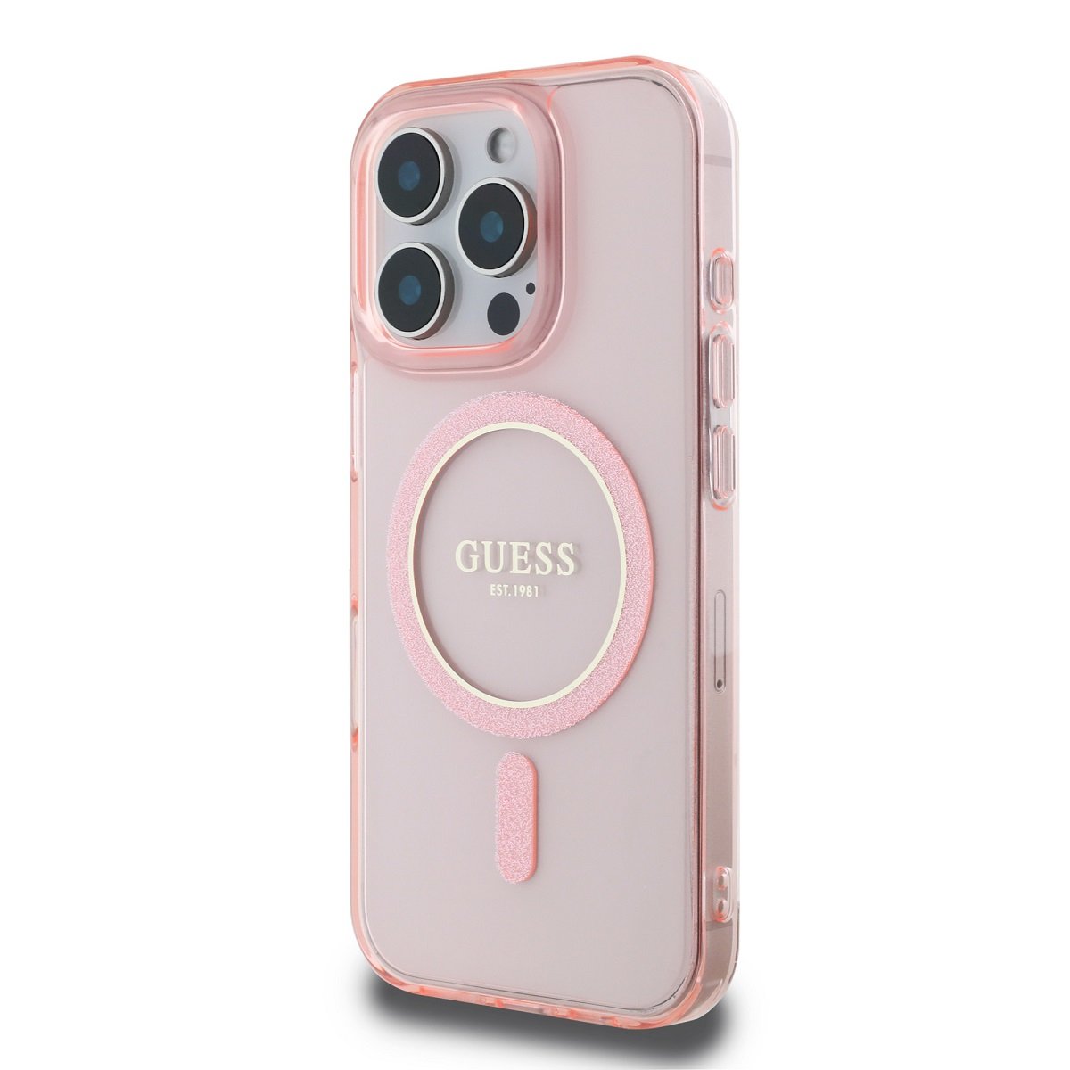 GUESS IML Glitter Ring MagSafe ümbris Apple iPhone 16 Pro jaoks (GUHMP16LHFGEREP)