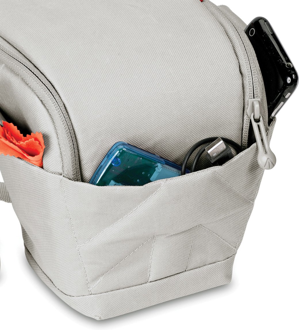 Laukku suojaa kameraa kuljetuksen aikana ja pitää valokuvaustarvikkeet järjestyksessä helposti saavutettavissa olevissa taskuissa.