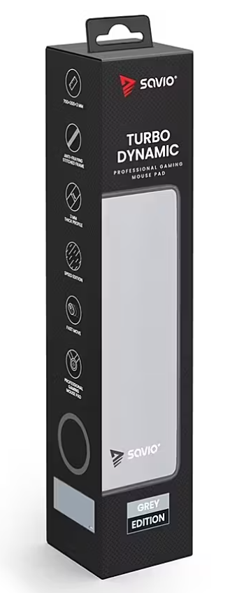 Manufacturer: SavioModel name: Turbo Dynamic LType: Gaming mouse padSize category: LSurface type: Turbo Dynamic (optimized for speed and control)Material: High-quality fabric surface, non-slip rubber baseEdges: Reinforced edges (protection against wear)Design: Minimalist blackThickness: 3 mmCompatibility: Suitable for all mouse sensor types (optical and laser)