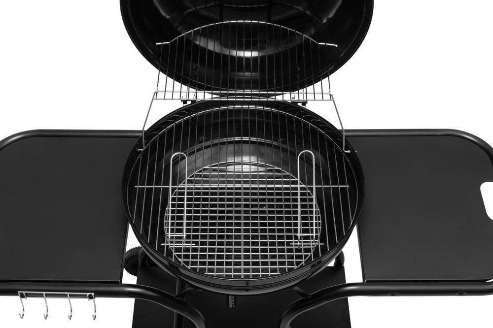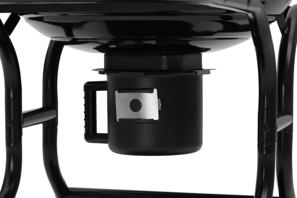 The grill’s removable ash pan makes cleaning easier and also functions as an air control channel to adjust the intensity of the charcoal. The air control vent and thermometer on the lid provide good control over the grill’s internal temperature, making cooking more even and predictable.