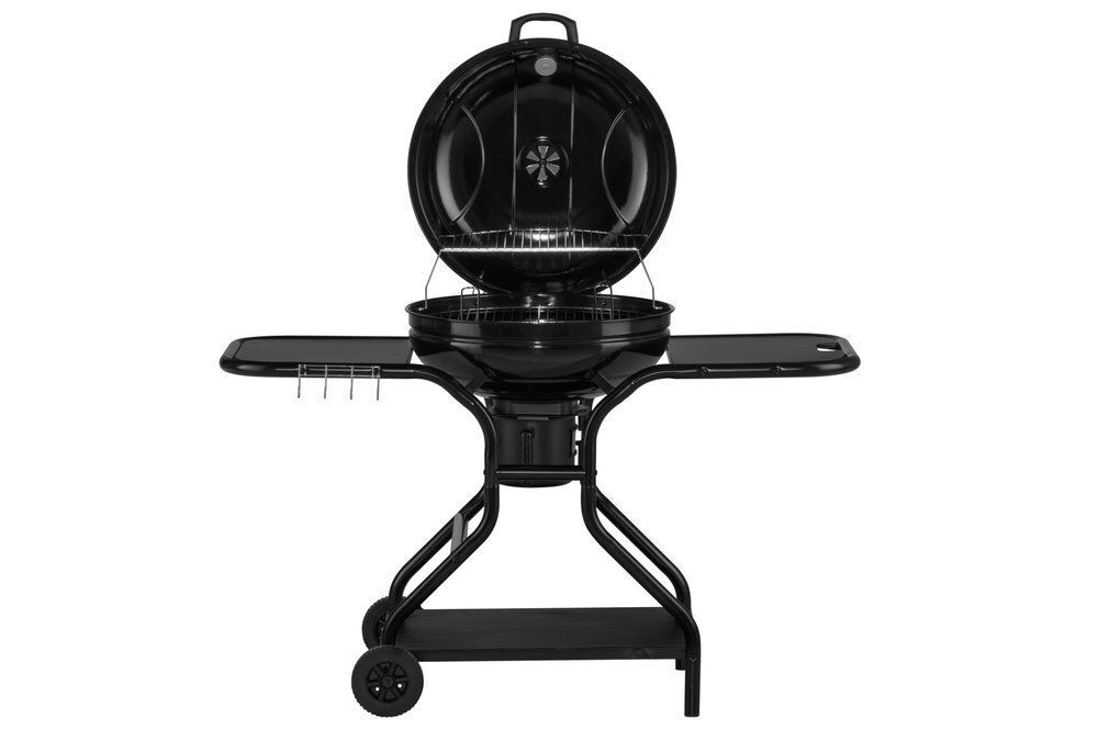 The large side shelves on both sides of the grill offer a convenient workspace for preparation and accessories. The lower shelf is suitable for storing additional accessories and fuel. The grill’s large and sturdy wheels make it easy to move around the yard or terrace.