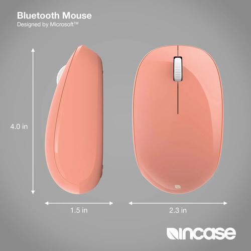 Kompaktne, värviline, juhtmeta. Bluetooth-hiir, mille on kujundanud Microsoft ™, on kaasaegne ja kompaktne hiir, mis mugavalt sobib käsi, ükskõik kus sa oled. Täiustatud, sujuva jälgimisega enamikus pindadel, hiir ühendub juhtmeta ja pakub kuni 12 kuu pikkust akupildi eluiga, ning on saadaval mitmes värvitoonis. Incase Designed by Microsoft Bluetooth Mouse (EU/UK). Kuju: Ambidekstriline. Seadme liides: Bluetooth, liikumisresolutsioon: 1000 DPI, nuppude tüüp: vajutatavad nupud, nuppude arv: 3, kerimisliik: ratas. Toiteallikas: patareid. Toote värv: Peitš