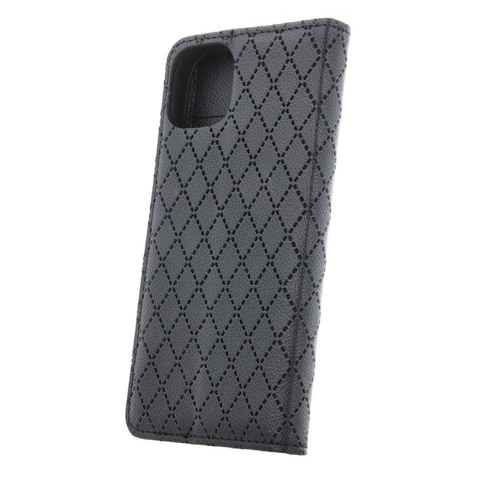 Mocco Smart Caro phone case is crafted with precision and attention to detail. It features a finish made of synthetic leather with a distinctive checkered pattern. In the bottom right corner, there is a black round button that has a glossy finish. This elegant and functional case is the perfect protection for your smartphone while adding a unique character to it. The case is made of durable and pleasant-to-touch synthetic leather that perfectly imitates natural leather. The interior of the case is carefully finished with a material that has a similar texture to the outer layer, providing comprehensive protection and an elegant appearance. The internal pockets allow for storing credit cards, ID cards, or other identification cards. A convenient and practical solution for those who want to have everything at hand. The design of the case allows for placing the phone in a horizontal position, which is ideal for watching movies, making video calls, or browsing the web. The cases are available in 4 color variants: beige, black, navy blue, purple.