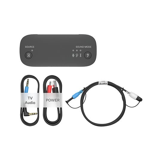Lähetin liitetään helposti lähes mihin tahansa televisioon tai AV-vastaanottimeen optisen mini Toslinkin, HDMI ARC:n tai 3,5 mm:n analogisen liitännän kautta. Virtaa laite saa USB-portista, joka voi olla TV:ssä tai muussa ulkoisessa USB-lähteessä.