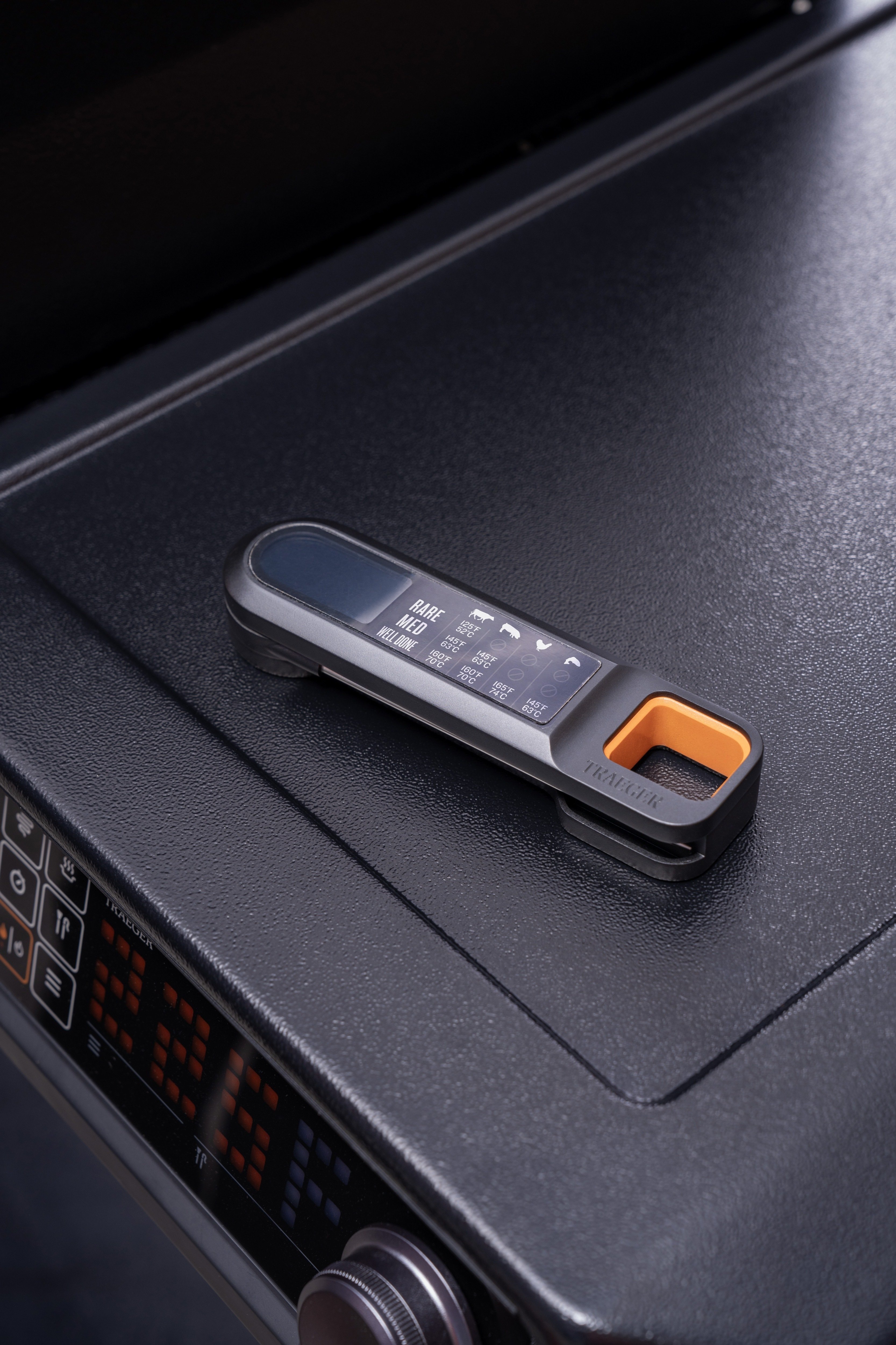 Traeger'i hetkeks soojendav liha termomeeter on abivahend, mis aitab kiiresti ja lihtsalt täpselt mõõta toidu sisetemperatuuri. See tagab, et teie praed on küpsetatud täiusliku küpsuseni ilma aimduseta. Termomeeter on mõeldud kiirete temperatuuri näitude saamiseks, mistõttu see on praktiline abivahend nii koduköögis kui ka grillimisel.