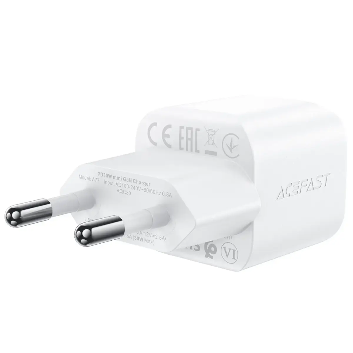 Acefast A77 reisiadapter | 30W | PD, GaN | USB-C | USB-C kaabel kaasas | valge (A77_W)