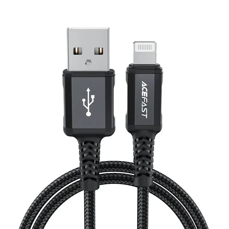 Acefast C4-02 andmete ülekandmise ja laadimiskaabel | MFI | USB-A Lightning'i | 12W | 1,2m | must (C4-02-A-Lblack)