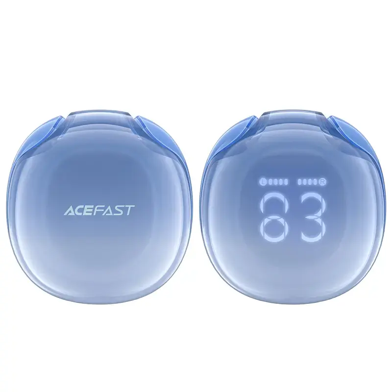 Acefast T9 Bluetooth 5.3 wireless headphones with display, in-ear, IPX4 certified - blue Acefast T9 wireless headphones provide the highest quality of music and phone calls. They operate for 6.5 hours when fully charged. They have an LED display that informs about the charge level. Bluetooth 5.3 technology ensures a fast and stable connection to the device. They are light and extremely comfortable. The most important advantages of Acefast T9 headphones: Noise reduction ensures high-quality conversations without interruptions . They are equipped with the latest noise reduction technology - SVE AI. They provide precise information about the charge level . They have a clear LED display. They enable fast charging. Acefast T9 headphones only need 10 minutes of charging to operate for 2 hours. They are light and comfortable . The well-thought-out design ensures that the headphones will fit into your pocket, backpack or purse. Additional 3 pairs of replaceable earbuds make the headphones fit any ear. They have a water-resistant structure . This is confirmed by the IPX4 certificate. They provide touch control . We can change music or answer calls with one finger. Specification: Brand : Acefast Model : T9 Battery capacity : Case : 480 mAh Headphones : 40 mAh Operating time: 6.5 hours Standby time: 30 hours Charging time: Case : 2 hours Headphones : 1 hour Waterproof class : IPX4 Connector type : USB-C (female) Bluetooth version : 5.3 Bluetooth range : 10 meters Frequency : 20Hz ~ 20kHz Blue color Delivery range : headphones case case cover replaceable inserts - 4 pairs pendant USB-C / USB-A cable user manual Intuitive touch control Touch control allows you to easily answer calls or change music tracks without having to reach for your phone. IPX4 moisture protection The waterproof design provides comprehensive protection against splashes. Acefast T9 headphones are perfect for use in all weather conditions. Wide compatibility Acefast T9 headphones work perfectly with smartphones, tablets and laptops. Regardless of the device, they provide the highest quality sound.