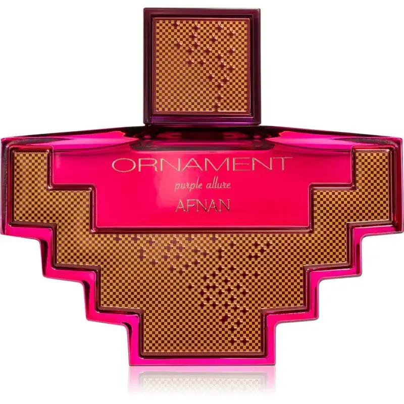 Afnan Ornament Purple Allure is a womens fragrance produced by the Dubai-based Afnan perfume house. Starting with top notes of grapefruit, mandarin orange and raspberry, this scent draws wearers in with its sharp and bracing yet honeyed and juicy introduction. Its center blends the creamy caramel-like tones of toffee with earthy cardamom, pungent anise and sweet white floral notes. Afnan Ornament Purple Allure Perfume by Afnan, Afnan Ornament Purple Allure is a women's fragrance with citrus, gourmand, floral, spicy and incense accords. Wearers will first notice its striking scarlet geometrically shaped bottle, but they're further captivated by its top note blend of mandarin, raspberry and grapefruit. Its heart combines delicious toffee with anise, cardamom and white floral notes. Finishing with musk, vanilla and patchouli, this decadent scent offers a satisfying dry-down. Afnan is a perfume brand based in the United Arab Emirates. Founded in 2007, the brand has over 50 scents to its credit in men's, women's and unisex editions. Its founder and primary fragrance crafter, Imran Fazlani, draws from the diverse culture of the Uae and sophisticated sensibilities to develop a wide range of luxury perfumes. The company also offers attars, which are concentrated perfume oils, along with home fragrances and incense. Standout scents include Naseej Al Oud, 9 Pm, 9 Am, Hamsa and Rare Carbon. All products are original, authentic name brands. We do not sell knockoffs or imitations. Specifications Gender: Women Fragrance: Ornament Purple Allure Capacity: 3.4 oz.