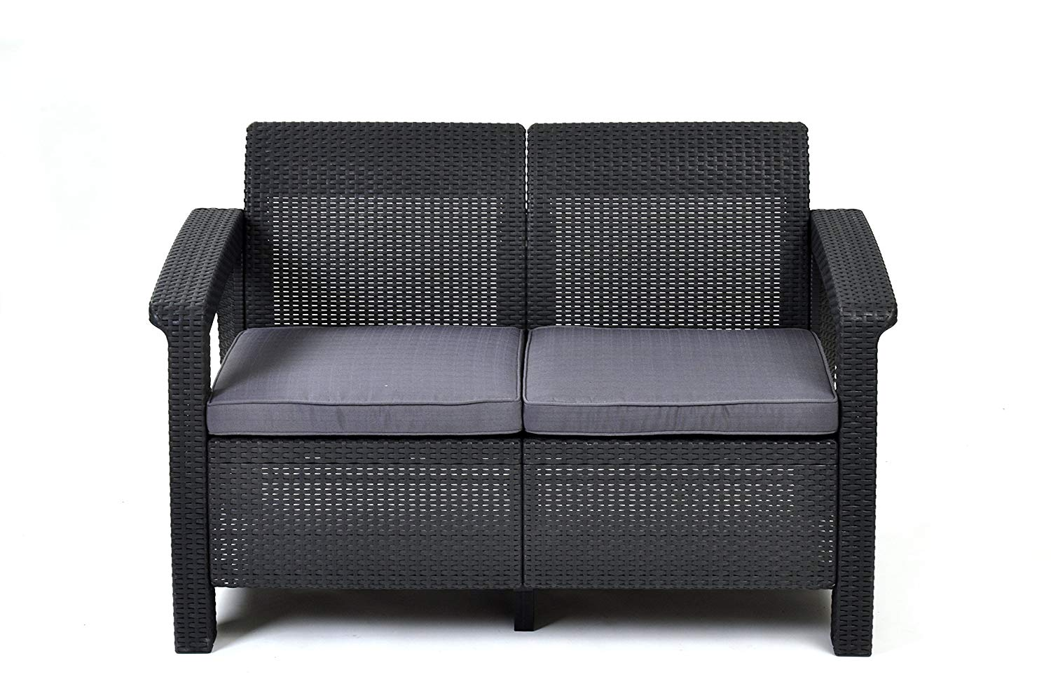 Aiadiivan plastikust Curver Corfu love seat mugav ja pehme patjadest istumisalus värvus: hall valmistatud plastikust punutud ese tarnitakse komplekteerimata kujul mõõdud: laius - 128cm, sügavus- 70cm, kõrgus - 79cm. Kaasaaegne ja moodne aiadiivan interjööri hubasemaks muutmiseks.