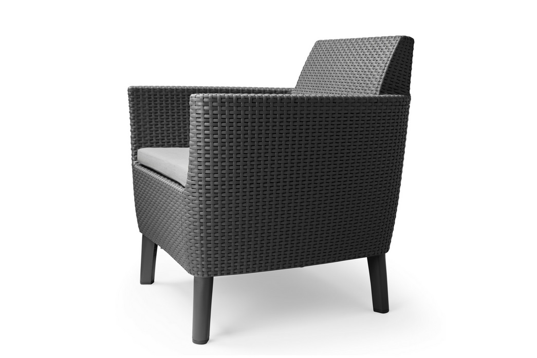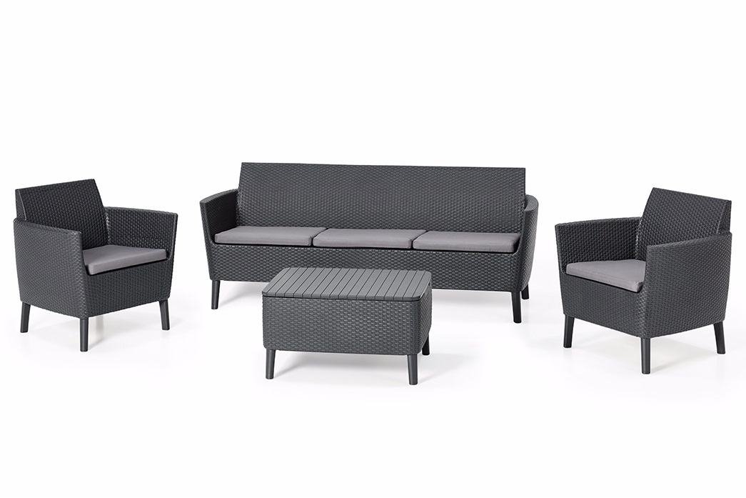 Salemo mööblikomplekti peamised omadused on kaasaegne disain, elegantsus ja väga suur mugavus. Komplekti kuuluvad avar ja mugav kahekohaline diivan, 3 tugitooli ja laud koos hoiufunktsiooniga. Mööblit iseloomustab originaalne tekstuur, mis imiteerib looduslikku rotangi. Komplekt sobib ideaalselt aeda, terrassile ja sisekujunduseks. Mööblit on lihtne kokku panna ja hooldada.Vastupidav ebasoodsatele ilmastikutingimustele ja UV-kiirgusele. Valmistatud kvaliteetsest plastikust.*Mööblit ei soovitata kasutada välitingimustes temperatuuridel alla 0 °C või üle 40 °C.Suurus:Tooli (2x): 74 x 67 x 76cm.Diivan: 187 x 67 x 76cmlaud: 76 x 56 x 42cmPakendi suurus: 120 x 80 x 39cm; 120 x 80 x 37cmKaal: 42,2kg*Eraldise värvus võib erineda pildist. Toote kirjeldus on üldine ja ei pruugi hõlmata kõiki toote omadusi. Toote hinnad e-poes võivad erineda supermarketite ja teeninduskeskuste hindadest.