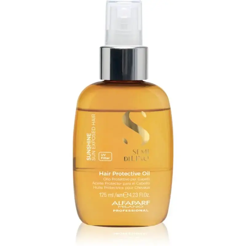 Alfaparf Milano Semi di Lino Sunshine, 125 ml, Sun protection for hair for Women, Harmful UV radiation deprives hair of its shine and healthy appearance. It breaks down the basic building block of the hair fibre - keratin, irreversibly damaging its structure. A protective product from Alfaparf MilanoSemi di Lino Sunshine provides the same care for your hair and possibly your scalp as a sunscreen does for your skin and complexion. It coats the hair with a thin film, which acts as a barrier to prevent harmful radiation from reaching the hair fibre. This helps keep hair exposed to the sun hydrated, full of vitality and free from damage. Characteristics: hydrates hair after sun exposure regenerates the hair fibre protects against UV radiation leaves hair subtly scented prevents frizzy hair Ingredients: vegan product UV filters How to use: Use before exposure to the sun. Apply even when out in the sun.