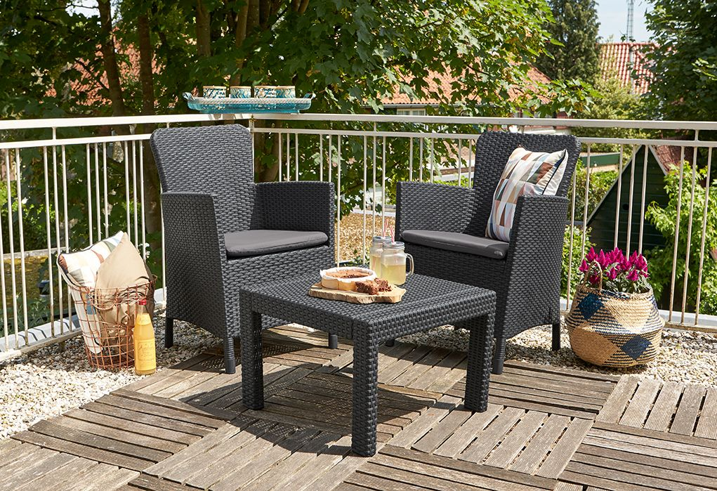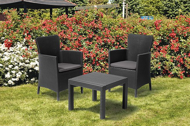See kompaktne aiamööbli komplekt Salvador firmalt Allibert sobib suurepäraselt rõdudele või väiksematele sisehoovidele, kuid on ühtlasi nii funktsionaalne kui ka dekoratiivne detail kõikjal õues. Rõdukomplekti Salvador kuuluvad toolid on väga mugavad ja trendika vitstest kujundusega. Tänu erinevatele ilmastiku- ja veekindlatele kangastele on aiamööbli komplekti lihtne puhastada ja see ei kulu. Komplektil Salvador on kindel raam ja kerge konstruktsioon muudab kogu mööbli ühest kohast teise viimise lihtsaks. Eemaldatavad istmepadjad pole mitte ainult mugavad, vaid ka kergesti pestavad. Komplekti kuulub 1 laud, 2 tugitooli ja 2 istmepatja. Märkus: Vihma, lume või külmumise korral soovitame mööbel katta. Materjal: polüpropüleen Padja koostis: polüester Värv: grafiit Laua mõõtmed: 59 x 59 x 43 cm (pikkus x laius x kõrgus) Tooli mõõdud: 60 x 62 x 89 cm (laius x sügavus x kõrgus) Komplekt koosneb: 1 x laud, 2 x tooli käetugedega ja 2 x istmepatja Kangas: Polüpropüleen: 100%