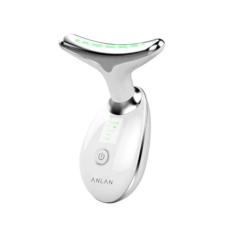 Electric neck massager by ANLAN Enjoy smooth, firm and visibly rejuvenated skin. The neck massager by ANLAN offers several modes for comprehensive skin care. It allows deep cleansing and can provide EMS massage. It affects the skin with 45°C temperature and light in 3 colors - red, blue and green. It also uses ion action. It is equipped with a durable 500 mAh battery. 3 working modes The 3 available modes of the massager can meet the diverse needs of users. The EMS mode allows electrostimulation of muscles and helps improve collagen production. It smooths wrinkles and increases skin elasticity. Clean mode cleans pores and adds radiance to the complexion. Hot mode uses a temperature of 45°C to gently stimulate and relax the skin, so it contributes to skin rejuvenation. Light therapy in 3 colors The massager also offers light therapy in 3 colors. Red light removes wrinkles, regenerates damaged skin and improves collagen production. Blue light gets rid of acne and soothes inflammation. Green light promotes blood microcirculation in the skin and reduces swelling. All this will allow you to improve the appearance and condition of your complexion without having to spend money on visits to a beauty salon. Sonic vibration and 45°C temperature With the help of a massager from ANLAN, you can also improve circulation and slow down skin aging. The device offers a special massage using sonic vibrations and a high temperature of 45°C. In this way, it smooths the skin, restores its elasticity and eliminates swelling. Take advantage of the effect of ions Positive and negative ions allow you to effectively cleanse your pores, and make your skin better absorb nutrients. This allows you to get rid of acne and solve the problem of dry, dull skin. See how little it takes to make your skin smooth, firm and radiant! Durable rechargeable battery The cordless massager lets you free yourself from wires and enjoy almost unlimited freedom of movement. Its long-lasting 500 mAh battery ensures a long run time. Charging the device takes only about 2 hours. To connect the massager to a power source, use the included USB cable. Multiple uses This practical massager will prove useful in many applications. With its help you can nurture not only your neck, but also your neck, forehead and cheeks. This will comprehensively care for the appearance and condition of your skin. Give yourself a relaxing massage, deep cleansing and effective light therapy to delight in a smooth, firm complexion. Included Neck massager USB charging cable User manual Manufacturer ANLAN Name Neck Beauty Device Model ALMJY01-02 Material ABS Output voltage 3,7 V Battery capacity 500 mAh Charging time Approx. 2 h Power 2,5 W Input voltage 5 V 1 A Dimensions 89 x 47 x 120 mm