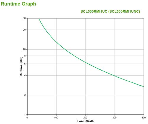 You can easily read the expected battery life in the runtime graph, which you can find between the product images. You can easily see how long the UPS supplies emergency power at a certain load.