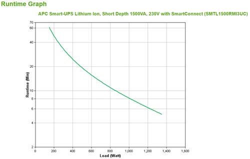 You can easily read the expected battery life in the runtime graph, which you can find between the product images. This way you can easily see how long the UPS will supply emergency power at a certain load.
