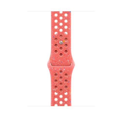 This strap contains at least 32% recycled fluoroelastomer, with each flake containing at least 66% recycled fluoroelastomer.Apple 45mm Magic Ember Nike Sport Band - S/M. Product type: Band, Compatible device type: Smartwatch, Product colour: Coral. Wrist size range: 140 - 190 mm. Quantity per pack: 1 pc(s)
