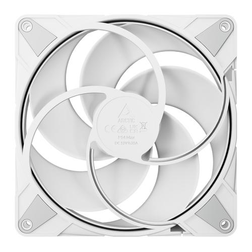 ARCTIC’s versatile assortment of Fans is both quiet and powerful. We have the right options for any application or need, in sizes from 80 to 140 mm. Plus, our Fans are equipped with state-of-the-art engine technology, innovative fan blades and high-quality bearings, making them particularly durable and efficient.ARCTIC P14 Max (White) - 140 mm High-Speed PWM Fan. Type: Fan, Fan diameter: 14 cm, Rotational speed (min): 400 RPM, Rotational speed (max): 2800 RPM, Maximum airflow: 95 cfm, Airflow: 161.4 m³/h, Maximum air pressure: 4.18 mmH2O, Bearing type: Fluid Dynamic Bearing (FDB). Voltage: 12 V. Width: 140 mm, Depth: 140 mm, Height: 27 mm. Product colour: White