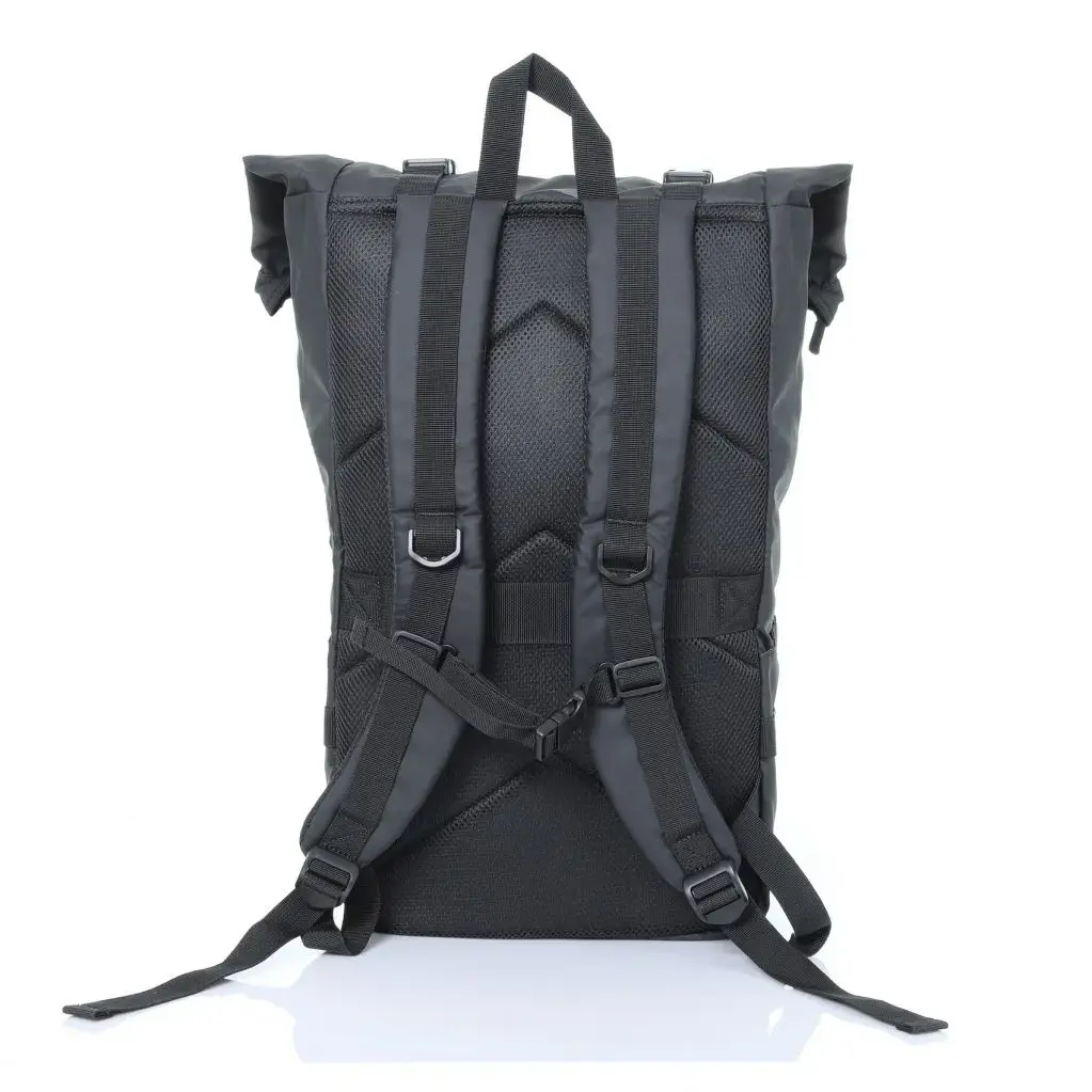 Plecak typu roll-top jest wyjątkowo przestronny i jest praktycznym towarzyszem podróży na studia, do szkoły i wypoczynek. Dodatkowe przegródki zapewniają doskonałą organizację. KOMORA OCHRONNA NA KOMPUTER PRZENOŚNY: Wyściełana komora na laptopa do 15,6 '' zapewnia maksymalną ochronę przed uderzeniami. FUNKCJA ROLL-TOP: dzięki funkcji roll-top pojemność plecaka można łatwo powiększyć. Górna część dodatkowo zabezpieczona magnesami . Plecak do notebooka idealny do biura, na uczelnię lub wieczorne wyjście. Wygodny transport, bezpieczne przechowywanie i ochrona przed zabrudzeniem, zadrapaniami i wilgocią, świetnie nadaje się do jazdy na rowerze, hulajnodze czy motorze. Zwijane zamknięcie umożliwia powiększenie pojemności i wysokości plecaka i umieszczenie w nim nawet większych przedmiotów Materiał chroniący przed wilgocią Wyściełany tył zapewniający ergonomiczne i wygodne noszenie Wyściełana materiałem przegroda na laptopa, zapewniająca niezawodną ochronę w trakcie transportu Taśma z rzepem do mocowania notebooka Przestronna przednia kieszeń na dodatkowe akcesoria lub rzeczy osobiste, zamykana na zamek plus dodatkowo rzepy. Regulowane, miękko wyściełane wzmacniane szelki W dwóch kieszeniach bocznych można nosić napoje lub parasole i mieć je zawsze pod ręką. Pas piersiowy umożliwia wygodne noszenie plecaka odciążając tym samym kręgosłup Specyfikacja: Wymiary produktu: 53 x 34 Maksymalny rozmiar noteboka 42cm x 26cm Materiał wykonania Poliester 300D