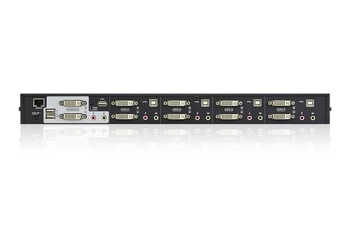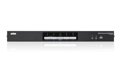 The CS1644A 4-Port USB DVI Dual View KVMP™ Switch is a multi-application device that integrates a 4-port KVM switch with 2-port USB hub. The newest version now supports Quad-View functionality with two Dual View KVM Switches connected.