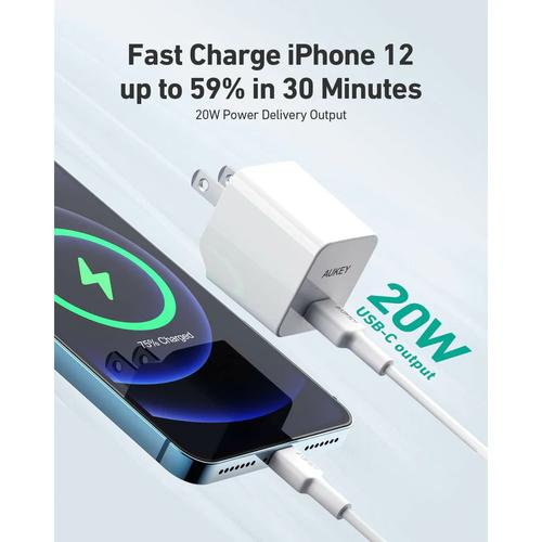 【High-Speed Charging】: Fast charge your iPhone 13 / 13 Pro / 13 Pro Max (compatible with iPhone 11, 12 and 13), Google Pixel 2 / 2 XL 3 / 3 XL, or other compatible USB-C devices that support USB Power Delivery【USB Power Delivery】: Next-generation, future-proof fast charging technology that charges your USB Type-C phone or tablet at up to 20W【Safe & Reliable】: Built-in safeguards protect your devices against excessive current, overheating, and overcharging【Compact & Portable】: Extremely compact form factor and foldable plug ensure maximum portability wherever you go. Handy for home, office, and vacationsCompact USB C ChargerThis USB-C charger packs a total of 20W of power into its compact form. Also features a foldable plug for easy portability and storage. Keep your devices charged at home, in the office, or on the go.USB Power DeliveryUSB Power DeliveryUSB Power Delivery is a new, universal multi-voltage charging standard that dynamically negotiates power output over a USB Type-C connection to safely and efficiently recharge a wide range of compatible devices. Fast charge your new iPhone from 0% to 50% in just 30 minutes. Consolidate your power with one charger for all your USB-C tech.AUKEY PA-Y20S. Charger type: Indoor, Power source type: DC, Charger compatibility: Universal, USB Type-C ports quantity: 1, Fast charging, Power protection features: Over current, Overcharge, Overheating. Product colour: White