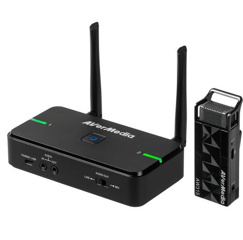 AVerMedia AW315BN. Microphone type: Handheld microphone, Microphone connectivity: RF Wireless, Wireless range: 20 m. Receiver type: Stationary receiver. Transmitter type: Built-in transmitter. Radio Frequency (RF) range: 2400 - 2483 MHz, Operating frequency: 2400 MHz, Total Harmonic Distortion (THD): 0.5%. Battery technology: Lithium, Battery voltage: 5 V, Battery recharge time: 3 h