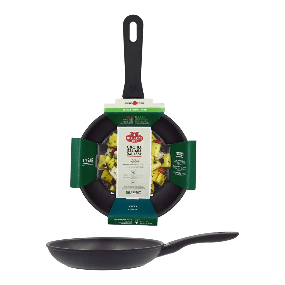Ballarini AVOLA series induction pan with multi-layer anti-burn coating.Perfect for all hobs, including induction. Aluminium body heats up quickly. PFOA-free, nickel-free, heavy metal-free. This special Radiant induction base, developed by Ballarini, distributes heat quickly and evenly.The remarkably scratch-resistant three-layer nonstick coating ensures impressive longevity. The aluminium body heats up quickly. Thermopoint system.Rinse and dry the pan before first use. Then lubricate the nonstick surface with oil or grease to make the coating optimal for use. Burnt food can be easily removed with a normal sponge.Do not use abrasive cleaners or metallic objects. We recommend cooking on a low flame. If it is necessary to cook over a high flame, gradually bring the pan up to the required temperature. It is recommended to use wooden or special plastic spatulas. It is not recommended to cut the products on the pan. Can be washed in the dishwasher on gentle cycle at a low temperature of 50°.Height: 7 cmDiameter: 26 cmWidth: 46 cmCompatible with: induction - gas - electric - ceramic - halogen