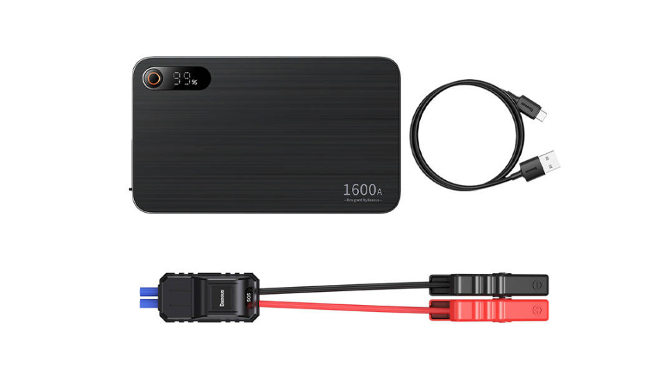 Ensure a sense of security. Baseus Super Energy PRO is a multi-tasking device with which you can confidently embark on your car journey. With its large capacity and support for PD protocols, you can successfully replenish the energy reserves of three devices at the same time, and if necessary, use it as a starter for your car even in the harshest weather conditions. The powerbank is distinguished by its well-thought-out design and a number of safety features, making its use completely safe and convenient, and its compact design and compliance with aviation standards will also allow you to take it on board a plane. Wide compatibility allows you to use it with many devices, and the built-in display will clearly indicate a good time to recharge. Enjoy a highly efficient device with Baseus. The powerbank supports PD protocols, and its total output power is as much as 80W, so charging takes little time. The availability of three USB-A1, USB-A2 and USB-C ports allows you to charge three devices simultaneously. What's more, the device is distinguished by the operation of as many as four polymer batteries, thanks to which its maximum amperage reaches as high as 1,600A, and its current capacity ranks at 60C. What does this mean? The efficiency of the starter offers a level that is downright professional.The Baseus Super Energy PRO Car Jump Starter powerbank features wide compatibility. With its help, it is possible to generate power for gasoline and diesel engines, so it will provide reliable assistance when the starter of a motorcycle, a larger SUV or even a truck dies. The device automatically goes into a low-power state, so it will calmly last up to 6 months waiting for the moment when you need it. Baseus will allow you to effectively start your engine even in extreme conditions, as it can operate in a temperature range of -20℃-60℃.You can rest assured that your battery is safe. Baseus has a number of safety features with which the use of the device is completely safe. Baseus Super Energy PRO is distinguished by a specially designed system that makes the starter make a distinctive sound when the starter cables are plugged in incorrectly. Other electrical protections will protect your devices from reverse polarity, overheating, or overcharging. In addition, safety will be ensured by the powerbank's built-in emergency light equipped with three modes - continuous light, SOS light and strobe. The PD-enabled port charges at 65W, making the device ready for use again in 1.5 hours.