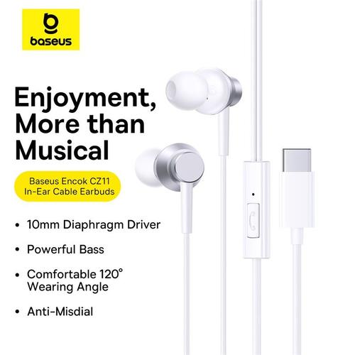 Baseus ENCOK CZ11 JUHETATAVAD KÕRVAKAPID MOON WHITE kõrvaklapid/peakomplekt Juhtmega Sisetõmbe Earbuds Helistamine/Muusika/Sport/Päevakõrvaldamine Valge (ENCOK CZ11 WİRED EARPHONES MOON WHİTE)