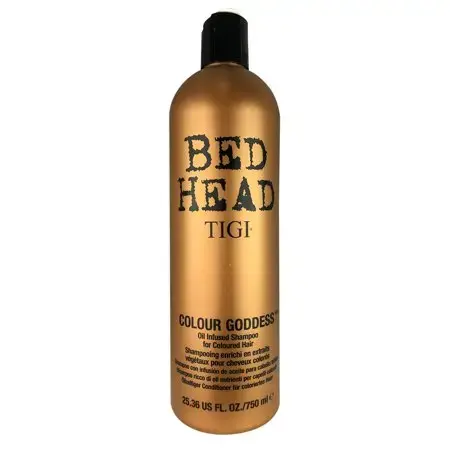 Nourish, smooth and soften coloured hair with the Bed Head Colour Goddess Shampoo. This colour shampoo is oil-infused to help with colour maintenance and enhance colour vibrancy. It cleanses, smooths and softens hair so hair is left refreshed, nourished and frizz-free. Ideal for coloured hair - it contains gold mica which helps highlight brunette, copper and red tones. Lather the shampoo into wet hair, then rinse. For best results, follow with the Colour Goddess Conditioner and get ready to dazzle. Ingredients: Water (Aqua/Eau), Sodium Laureth Sulfate, Cocamidopropyl Betaine, Glycerin, Potassium Chloride, Fragrance (Parfum), Glycol Distearate, Dimethiconol, Cocos Nucifera (Coconut) Oil, Linum Usitatissimum (Linseed) Seed Oil, Glycine Soja (Soybean) Oil, Phenoxyethanol, Carbomer, Sodium Chloride, Amodimethicone, Hydrolyzed Keratin, Prunus Amygdalus Dulcis (Sweet Almond) Oil, Butyrospermum Parkii (Shea) Butter, Guar Hydroxypropyltrimonium Chloride, TEA-Dodecylbenzenesulfonate, Laureth-23, Citric Acid, Trideceth-12, Disodium EDTA, Sodium Benzoate, PEG-45M, Magnesium Nitrate, Benzophenone-4, Magnesium Carbonate, Cetrimonium Chloride, Panthenol, PPG-9, Tocopheryl Acetate, Silica, Methylchloroisothiazolinone, Magnesium Chloride, Methylisothiazolinone, Mica (CI 77019), Titanium Dioxide (CI 77891), Iron Oxides (CI 77491), Blue 1 (CI 42090), Red 33 (CI 17200), Yellow 5 (CI 19140). Box Contains: Bed Head by Tigi Colour Goddess Shampoo for Coloured Hair 750ml | Bed Head By Tigi Colour Goddess Oil Infused 'shampoo' For Coloured Hair,750Ml In White.