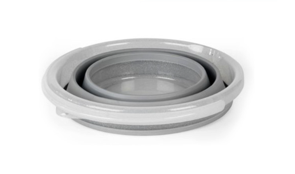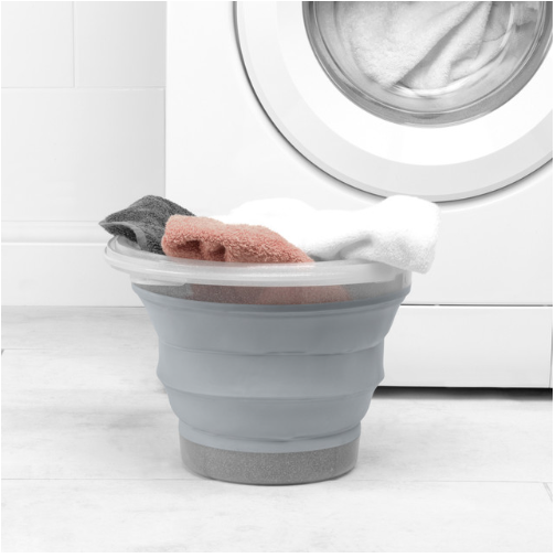 Beldray LA084354GRYBEU7 Glisten glitter collapsible bucket 10L Grey Features With an expanded size of 32 x 32 x 23 cm, this handy bucket has a stylish glitter finish and will make your home sparkle. With a generous 10 litre capacity, the bucket is deep enough to hold plenty of water and has a strong handle for carrying a bucketful. An essential for camping or caravanning, this bucket can be used for washing clothes, dishes and more whilst taking up minimal space. Perfect for cleaning windows, washing cars or cleaning decking outside, the bucket can simply be wiped clean after using outdoors. No need for a cleaning cupboard to store away this collapsible bucket – it conveniently folds down to fit in the smallest of spaces.