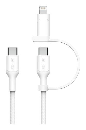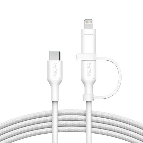 Our charging cable is crafted to endure up to 10 years of regular use. A 100% recycled material double-braided exterior helps it withstand up to 30,000 bends and 10,000 plug-ins, ensuring reliable performance.Belkin BoostCharge Pro. Cable length: 1.5 m. Connector 1: USB C, Connector 2: USB C/Lightning, USB version: USB 2.0, Maximum data transfer rate: 0.48 Gbit/s, Product colour: White