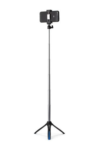 The Benro BK15 is a versatile mini tripod with a telescoping center column and selfie stick. The BK15 mini tripod with ball head includes a smartphone adapter and removable Bluetooth remote. Compatible with most smartphones. Clamp range is 48 - 100mm.Benro BK15. Suitable for: Smartphone, Product colour: Black, Blue, Brand compatibility: Any brand. Battery technology: Lithium-Ion (Li-Ion), Battery type: CR1632, Battery voltage: 3 V. Weight: 190 g, Length (max): 91 cm, Folded length: 20 cm. Package type: Hanging box