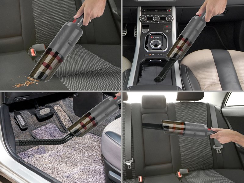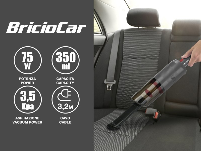 Practical hand-held hoover with car plug, ideal for vacuuming up all kinds of dry dirt inside the vehicle, thanks to the included accessories: hose, crevice lance and brush. The more than 3-metre long power cord allows you to reach every point of the car for optimal cleaning. Equipped with removable and washable 0.35L tank and filter.