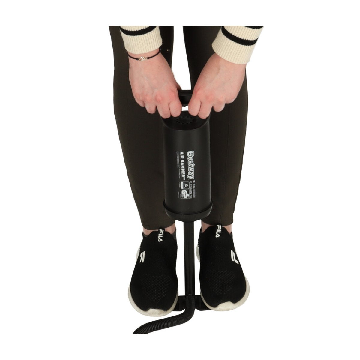 Product type: Manual hand pumpApplication: Inflation of inflatable productsOperating principle: Manual dual-action air pumping systemAir flow: Air is pumped on both up and down strokesControl: Manual operationStability: Base equipped with foot supports for stable useHose: Flexible long hose for comfortable handlingCompatibility: Suitable for various valve typesApplications: Pools, balls, air mattresses, boats, inflatable toysIncluded accessories: Hand pump, hose, 3 nozzles
