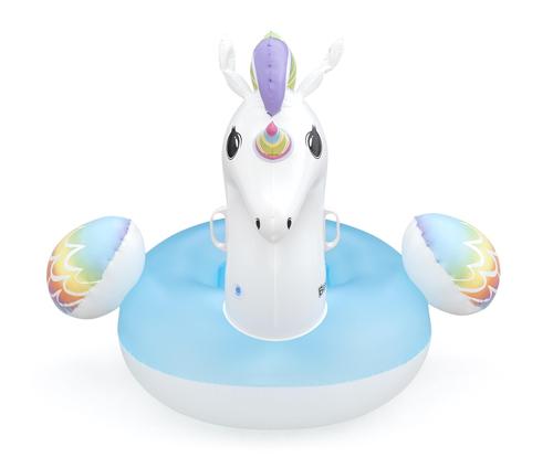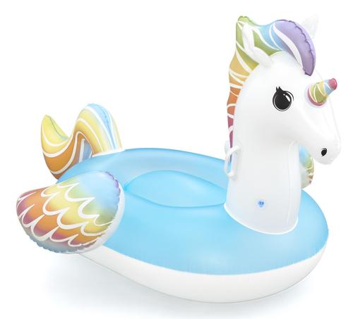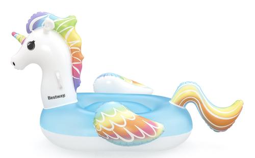 Get ready for one magical summer with the Bestway Fantasy Unicorn Ride-On. This larger-than-life unicorn ride-on pool float is perfect for kids ages 3 and up, and features vivid, rainbow-inspired color patterns and a huggable neck for hours of fun in the sun. Your kids can steady themselves with the heavy-duty handles and easily hop on when they're ready for a dreamy ride. The unicorn is easy to inflate, deflate and store so your kids can enjoy the ride-on season after season. Bring the fun and imagination home with the Bestway Fantasy Unicorn Pool Float!Bestway Fantasy Unicorn Kids Ride-On Pool Float 1.55 m x 1.19 m. Product type: Ride-on float, Coloration: Monochromatic, Material: PVC. Width: 1100 mm, Depth: 1630 mm, Height: 955 mm. Package width: 65 mm, Package depth: 240 mm, Package height: 240 mm. Minimum order quantity: 8 pc(s), Master (outer) case width: 280 mm, Master (outer) case length: 495 mm. Shipping (inner) case net weight: 9.38 kg