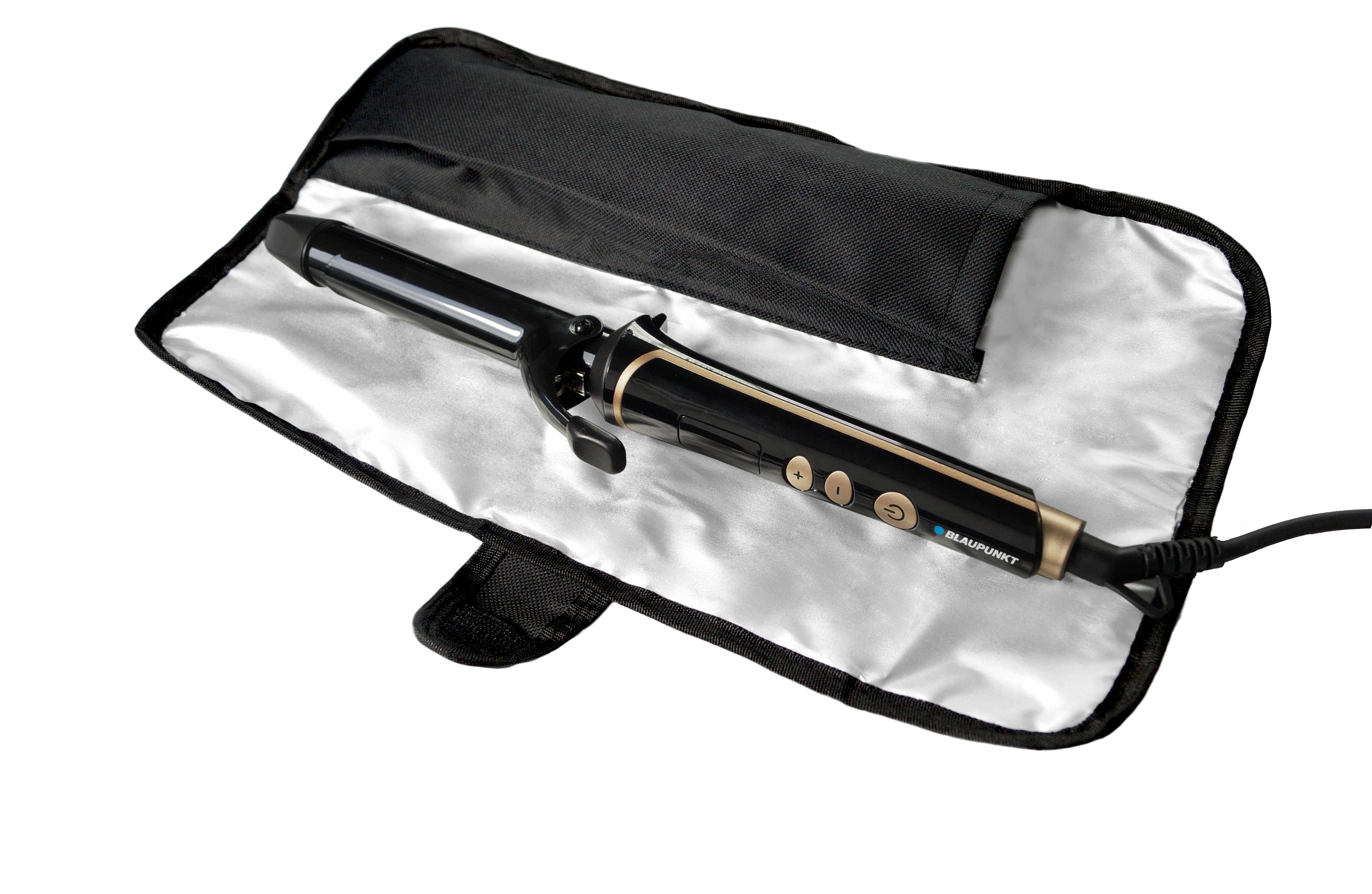 Technical data Aluminum barrel and tongs coated with ultra smooth ceramic Tourmaline coating prevents electrostatic discharges Coating with addition of Argan oil therapy Barrel diameter: 25 mm Temperature adjustment from 100°C to 220°C Heatproof case for easier use and storage Ready to use in less than one minute LED display Auto shut-off Power supply: 220-240V; ~50-60 Hz Power: 55 W