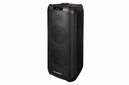 The device has a built-in 12 V battery with a capacity of 9 Ah, which allows about 3.5 hours of continuous playback. When the battery runs low, you can connect it to the power supply and continue to use it. Full charging takes approximately 7 hours.Blaupunkt PB10DB. RMS rated power: 1000 W. Microphone connectivity: Wired. Display type: LED, Backlight colour: Multi. AC adapter input voltage: 100 - 240 V, AC adapter frequency: 50 - 60 Hz, Battery type: Integrated. Width: 342 mm, Depth: 330 mm, Height: 862 mm