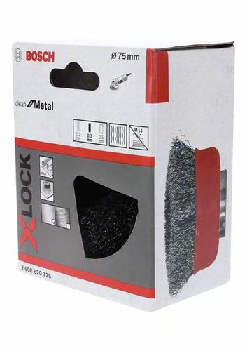 The X-LOCK Clean for Metal Cup Brush, Crimped Wire provides an extra-fine surface finish. Fitted with crimped wire for light-to-medium-duty cleaning applications, the wire cup brush is ideal for use on metal. It is suitable for use with X-LOCK angle grinders. Changing brushes is fast and convenient thanks to the keyless X-LOCK system.Bosch 2 608 620 725. Type: Cup brush, Centre type: Flat centre, Suitable for materials: Steel. Quantity per pack: 1 pc(s)