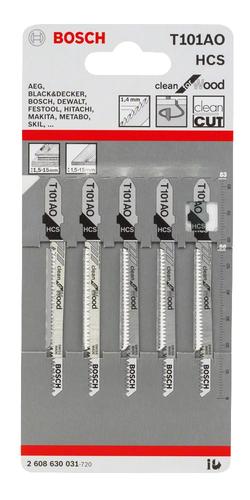 - Very fine tooth pitch for cutting woodworking materials with 1.5-15 mm thicknessBosch 2 608 630 031. Product type: Jigsaw blade, Suitable for materials: Plywood, Softwood, Blade material: High carbon steel (HCS). Blade tooth spacing: 1.4 mm, Cutting thickness (max): 1.5 cm. Overall length: 8.3 cm. Quantity per pack: 5 pc(s), Package type: Blister