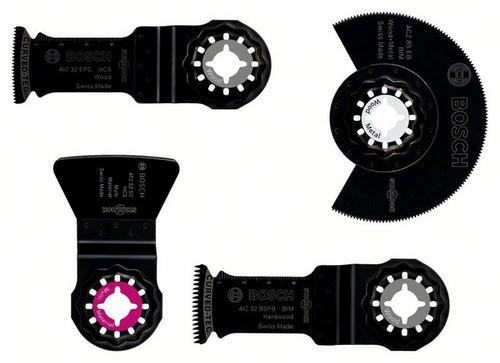 BIM segment saw blade Wood and Metal ACZ 85 EB (1x) / BIM plunge-cutting saw blade Hard Wood AIZ 32 BSPB (1x) / HCS plunge-cutting saw blade Wood AIZ 32 EPC (1x) / HCS scraper ATZ 52 SC (1x)Bosch 2 608 661 696. Type: Blade set, Suitable for materials: Wood, Material: High carbon steel (HCS). Quantity per pack: 4 pc(s), Package type: Blister