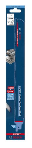 Any tradesman who regularly works with medium-thickness metals will appreciate the Bosch EXPERT ‘Medium-Thick Tough Metal’ Reciprocating Saw Blade.Bosch 2 608 900 377. Product type: Jigsaw blade, Suitable for materials: Stainless steel, Steel, Blade material: High carbon steel (HCS). Working length: 25 cm, Blade tooth spacing: 2.5 mm, Cutting thickness (max): 1.25 mm. Overall length: 30 cm. Quantity per pack: 1 pc(s)