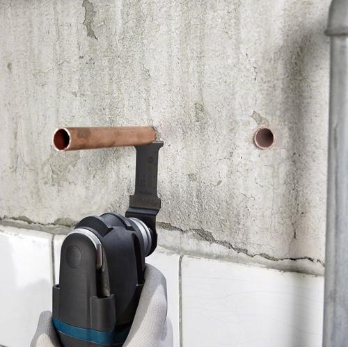 The BIM (bi-metal) combination of an HCS (high carbon steel) blade and HSS (high-speed steel) teeth resists wear and heat for long life when cutting non-hardened metals and abrasive materials. The Starlock Snap-In mounting system allows fast blade removal and exchange within 3 seconds without having to touch the blade. The mounting system produces the highest power transfer thanks to a 3-dimensional tight-fitting connection between machine and accessory.
