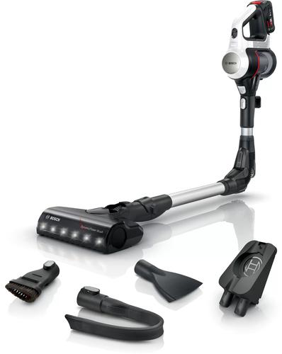 Bosch BBS711W. Product type: 2-in-1 stick vacuum, Dust container type: Bagless, Product colour: White. Cleaning type: Dry, Vacuum air filtering: Hygiene Filter, Dirt separating method: Filtering. Power control: Electronic, LED indicators: Battery level. Power source: Battery, Battery voltage: 18 V, Runtime: 40 min. Width: 252 mm, Depth: 204 mm, Height: 1315 mm