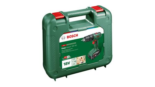 Bosch Easy Impact 18V-40. Product design: Pistol grip drill, Chuck type: Keyless, Motor type: Brushless. Chuck capacity (max): 1.3 cm, Idle speed (max): 163 RPM, Drilling diameter in wood (max): 3 cm. Power source: Battery, Battery technology: Lithium-Ion (Li-Ion), Battery capacity: 2 Ah. Weight: 1.4 kg, Width: 57 mm, Depth: 195 mm. Number of batteries included: 1 pc(s)